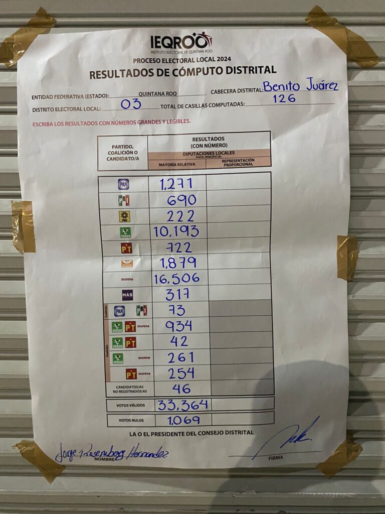 Desde la apertura del PREP, este distrito, que abarca la Zona Hotelera y varias de las supermanzanas céntricas de la ciudad, se mantuvo en una “empate técnico” que en un conteo preliminar le otorgaba al candidato del PAN-PRI, Cristian Pérez Vázquez, una escasa ventaja, de unos 500 votos, sobre la candidata de Morena.