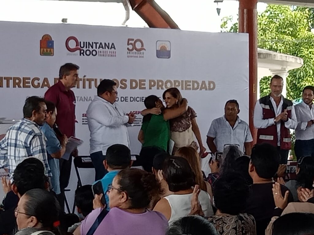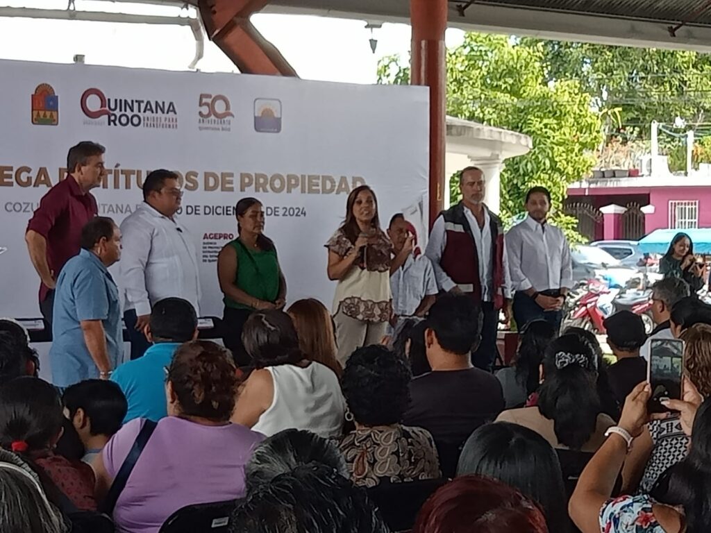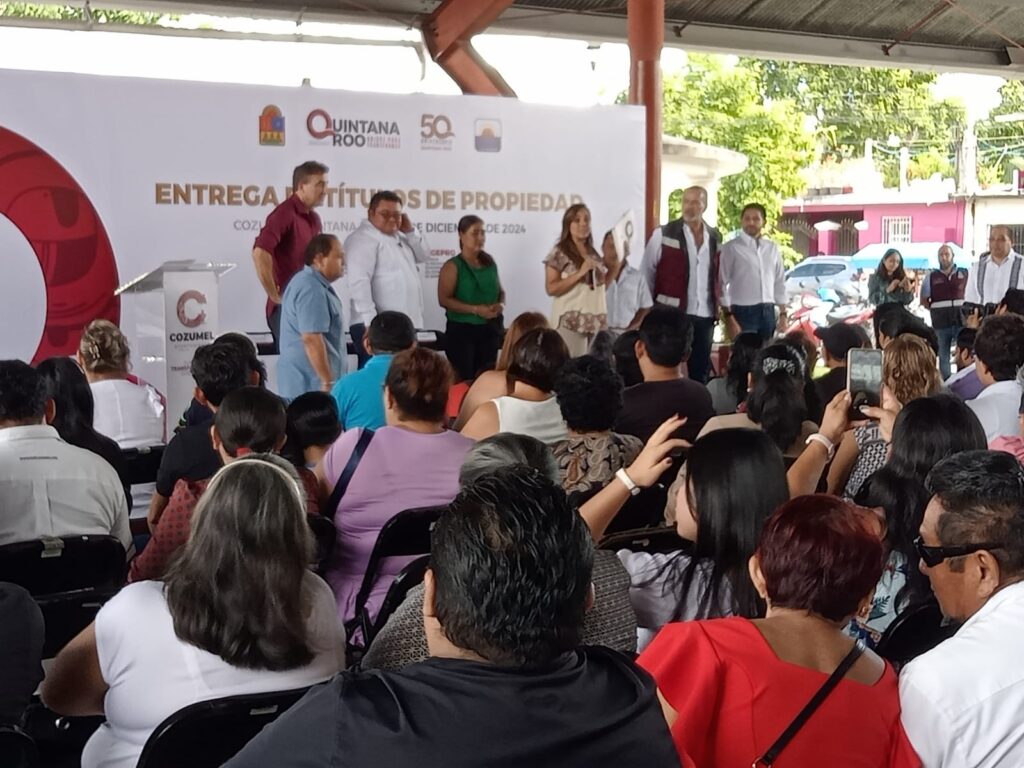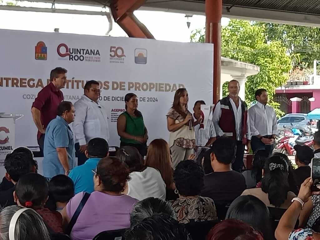 Chetumal.- Un total de 127 títulos de propiedad para particulares y siete para el municipio de Cozumel fueron entregados esta mañana en el domo de la colonia San Gervasio de la isla. Este evento fue encabezado por la gobernadora Mara Lezama, quien estuvo acompañada por el alcalde José Luis Chacón; Jorge Alberto Alonso Ovando, director de la Agencia de Proyectos de Quintana Roo (AGEPRO), Renán Sánchez Tajonar, diputado local, y Armando Lara De Nigris, titular de la Secretaría de Desarrollo Territorial Urbano Sustentable (SEDETUS).