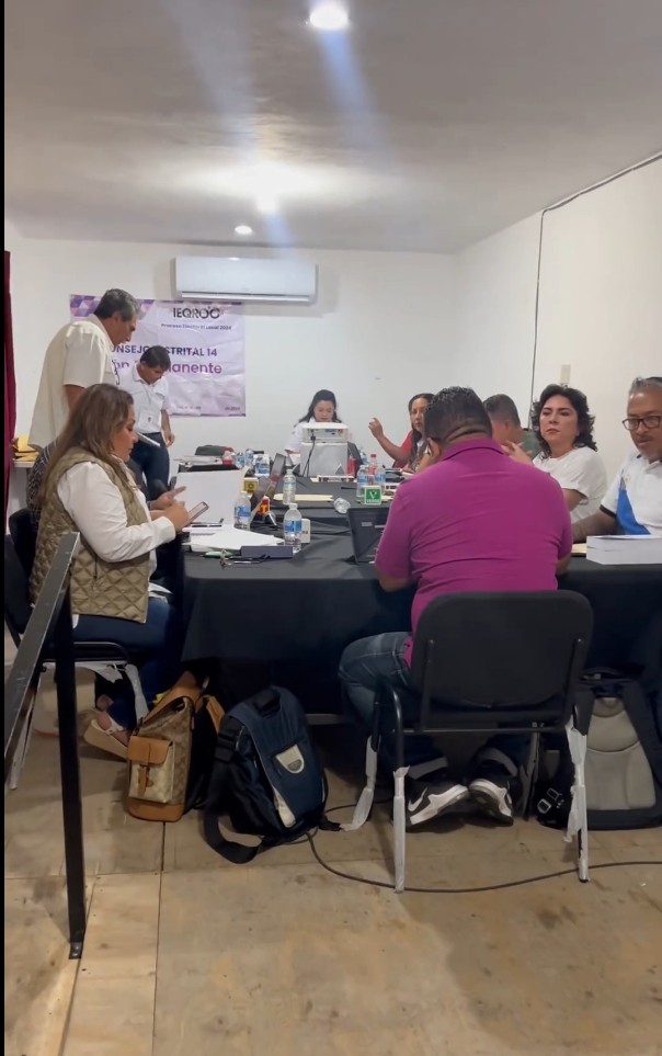 Othón P. Blanco.- Simpatizantes de Lidia Rojas Fabro, candidata a la presidencia municipal por Movimiento Ciudadano, se presentaron desde esta mañana a las instalaciones del Consejo Distrital 14 del Instituto Electoral de Quintana Roo (Ieqroo), en espera del reconteo de votos para la elección municipal.