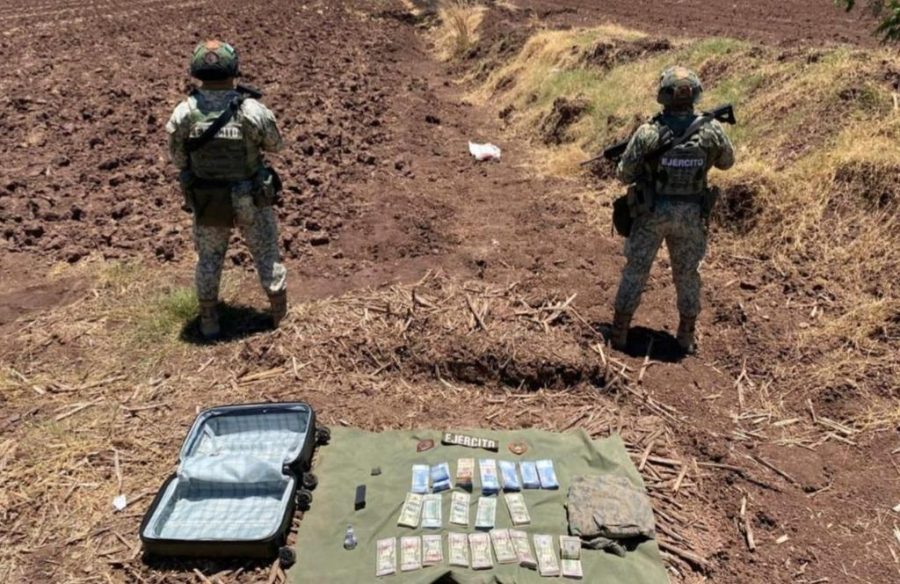 SINALOA.- Militares del Ejército Mexicano hallan maleta con más de 2.1 millones de pesos en efectivo y un reloj de lujo en una maleta abandonada. El hallazgo se realizó en una parcela agrícola en el municipio de Mocorito.