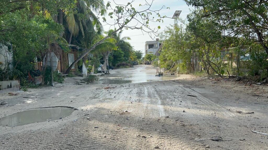 Al hacer un recorrido por las calles de Holbox, los visitantes observan huecos hasta de 80 centímetros de profundidad y pasos de agua de hasta un metro.