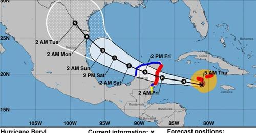 Huracán Beryl se debilita a categoría 3 antes de impactar Quintana Roo