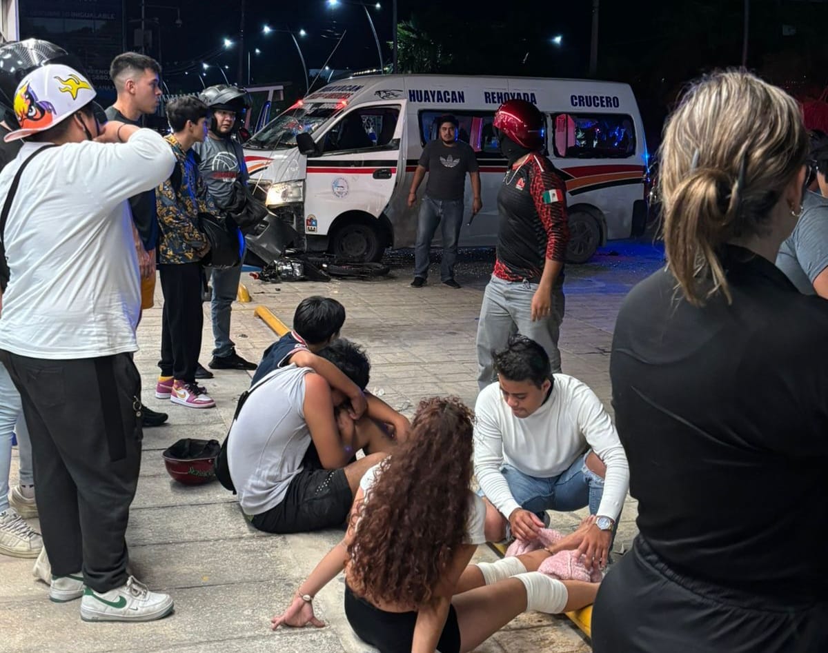En videos difundidos en redes sociales, se puede apreciar cuando el conductor de una combi de transporte público atropelló a varias personas que participaban en una rodada sobre la avenida Huayacán de Cancún.