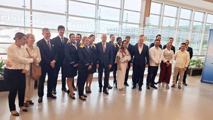 El corte de listón inaugural estuvo a cargo de la gobernadora Mara Lezama, el embajador de Alemania en México, Clemens von Goetze, y el CEO de Discover Airlines, Bernd Bauer.