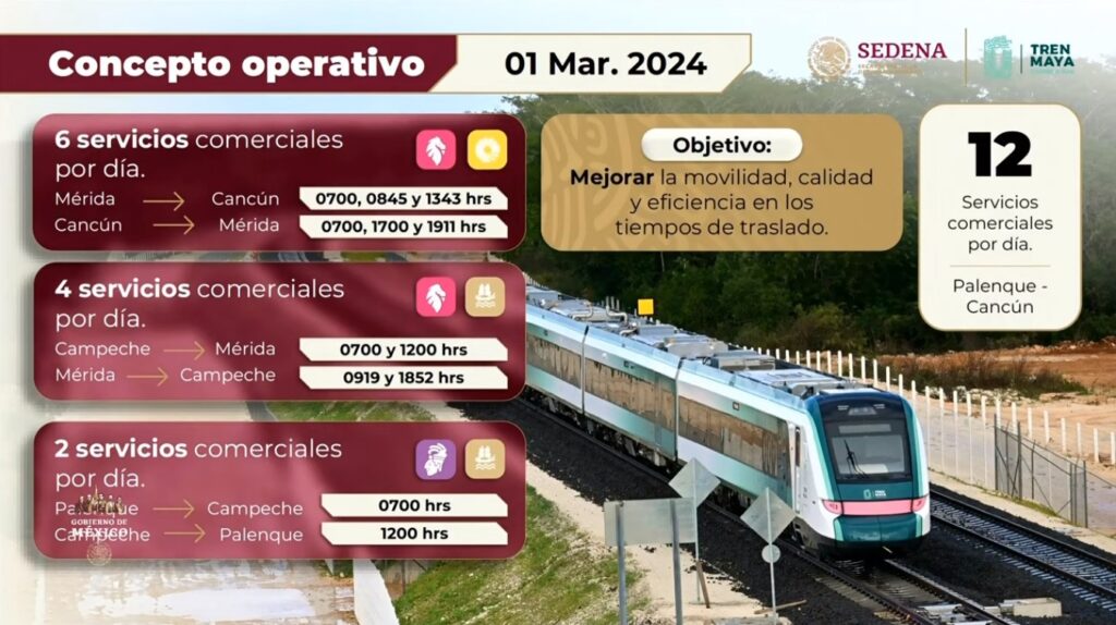 De forma diaria, habrá 10 salidas del tren para el tramo Cancún-Playa del Carmen. Seis serán comerciales, enfocadas en turistas, y cuatro especiales, para trabajadores.