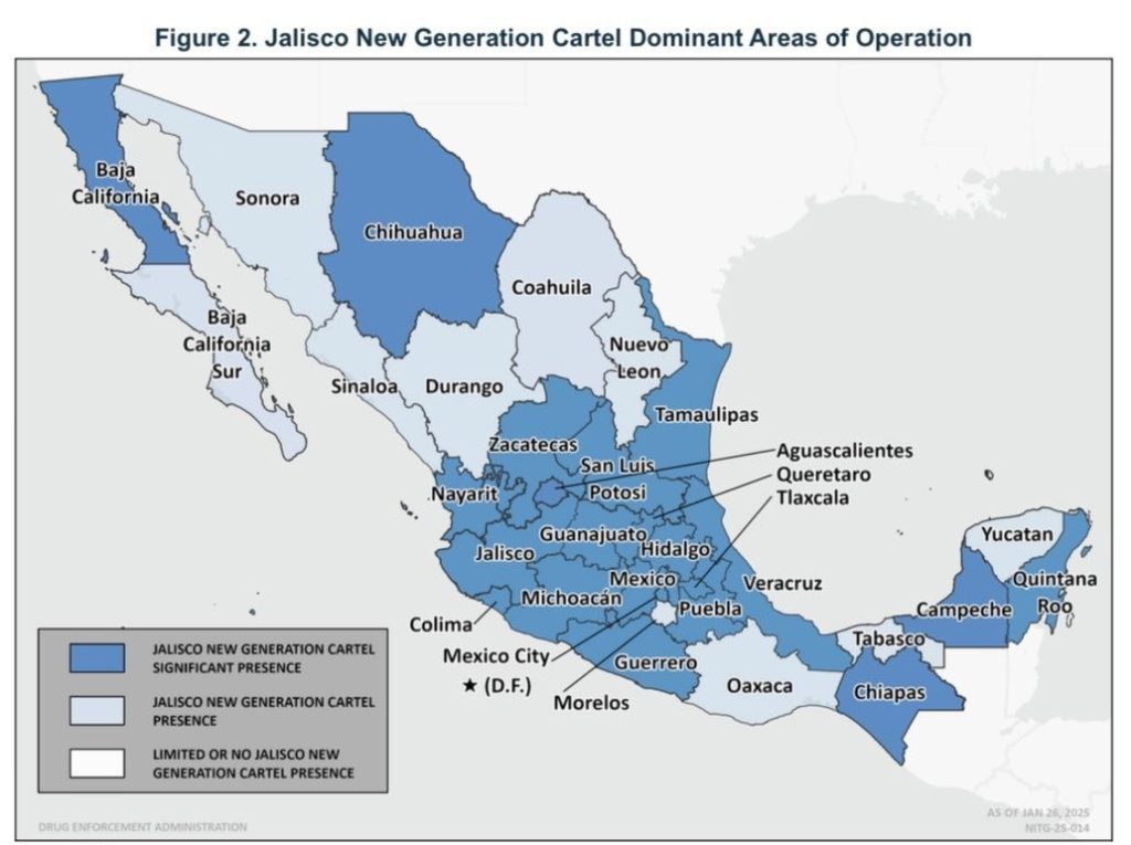 Un nuevo informe de la Administración de Control de Drogas (DEA) revela que el Cártel de Jalisco Nueva Generación (CJNG) y el Cártel de Sinaloa tienen presencia en casi todo México. Según la Evaluación Nacional de Amenazas por Drogas 2025, el CJNG opera en las 32 entidades del país, mientras que el Cártel de Sinaloa está presente en 31. Este informe, publicado el 15 de mayo de 2025, destaca la expansión de estas organizaciones designadas como terroristas. La DEA ha señalado que ambos cárteles son responsables de la violencia y el tráfico de drogas en la nación. La información presentada ha generado preocupación entre las autoridades y la población.