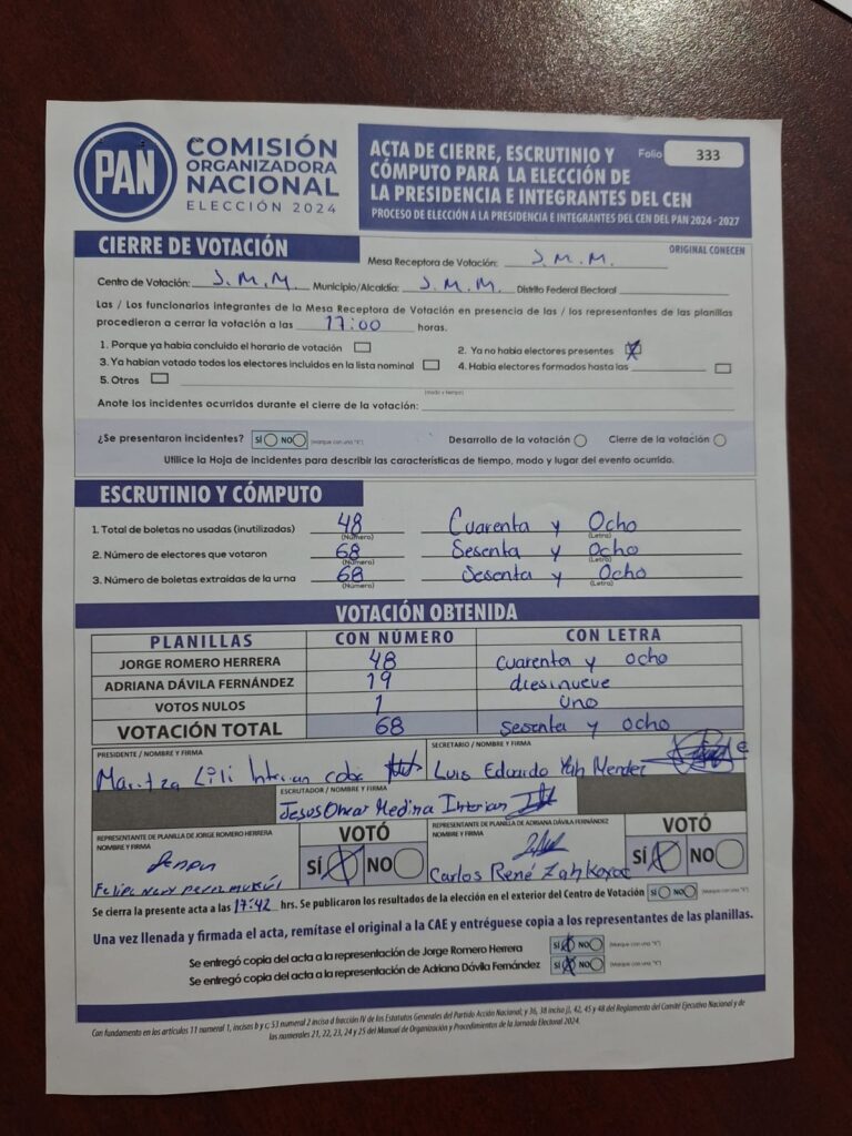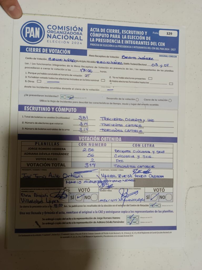 La Comisión Organizadora Nacional de la Elección del PAN será la responsable de dar el resultado final de este proceso electoral.