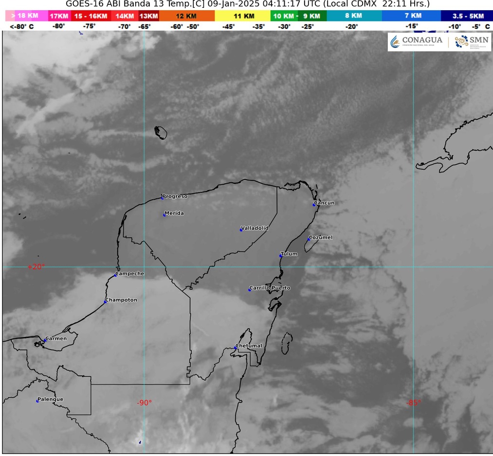 Lo anterior lo anunció el Servicio Meteorológico Nacional (SMN) y agrega que durante la tarde el ambiente será cálido; viento de componente norte de 20 a 30 km/h con rachas de 40 a 60 km/h en costas de la península.