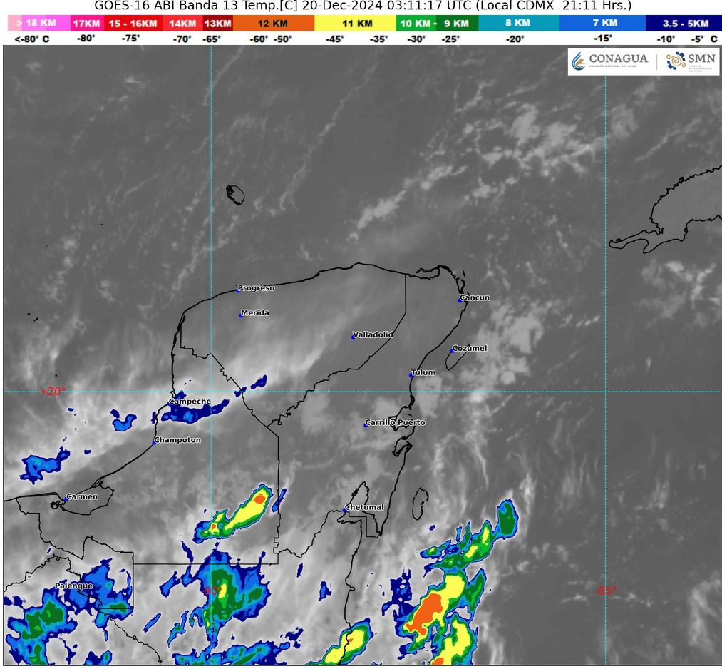 Chetumal.- Este día, el frente frío No. 15 se extenderá desde el este del golfo de México hasta la península de Yucatán, interactuando con un canal de baja presión sobre el oriente y sureste del país. Esto ocasionará chubascos y lluvias fuertes a muy fuertes en las regiones mencionadas.