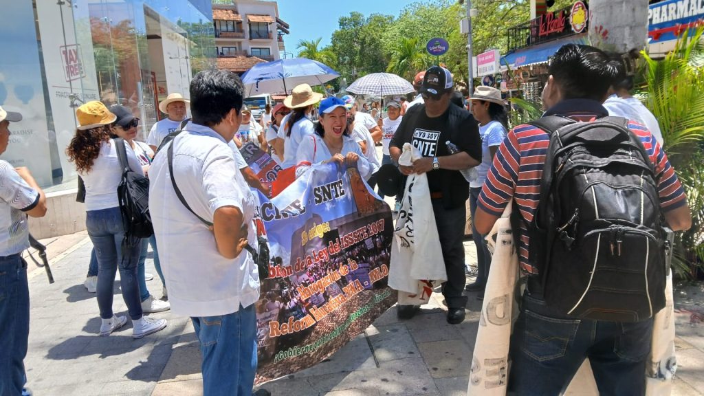 Un grupo de cerca de 20 maestros de la Coordinadora Nacional de Trabajadores de la Educación (CNTE) marchó este día por la Quinta Avenida de Playa del Carmen. Esta manifestación forma parte de una protesta nacional para exigir la derogación de la Ley del ISSSTE de 2007. Los docentes avanzaron desde la avenida Constituyentes hasta el Parque Fundadores, portando mantas que expresaban sus demandas. Mientras tanto, en la Ciudad de México, una comitiva de compañeros se unió a esta protesta, amplificando sus voces. La determinación de los educadores refleja una lucha por sus derechos laborales.