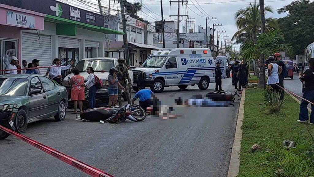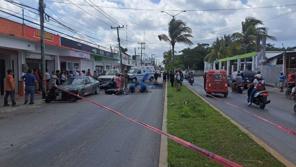 Cozumel.- Un hombre de la tercera edad perdió la vida y otra persona resultó con lesiones graves, al colisionar las motocicletas en las que circulaban, en el cruce de la 65 avenida con calle Miguel Hidalgo de esta isla.