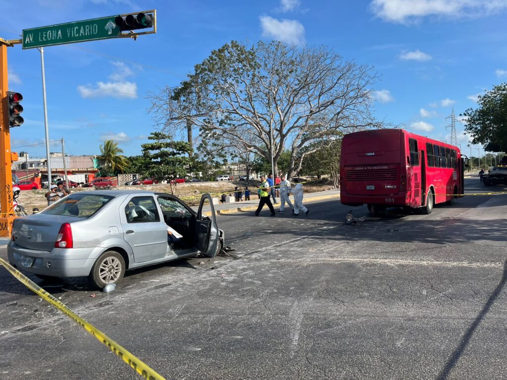 Muere una mujer en choque entre camión y carro particular, en la avenida Chac Mool de Cancún