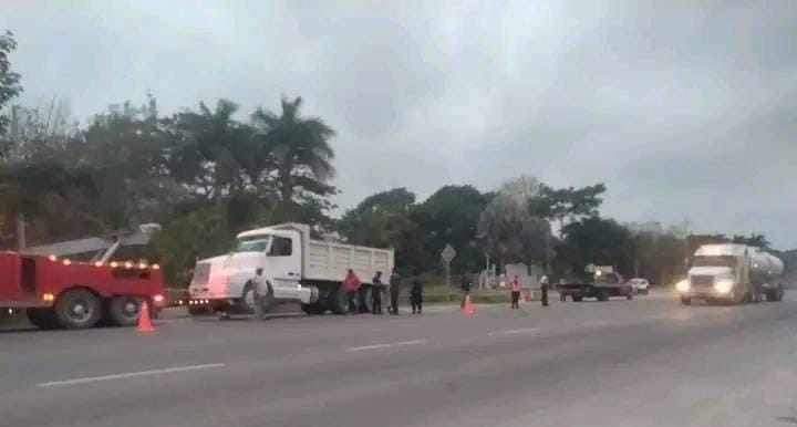 Los hechos ocurrieron alrededor de las 05:30 de la mañana del sábado, cuando las víctimas que se trasladaba en una motocicleta Italika, color negro, al llegar al entronque estrellaron contra la parte posterior del volquete Kenworth, color blanco, asignados a los trabajos del Tren Maya.