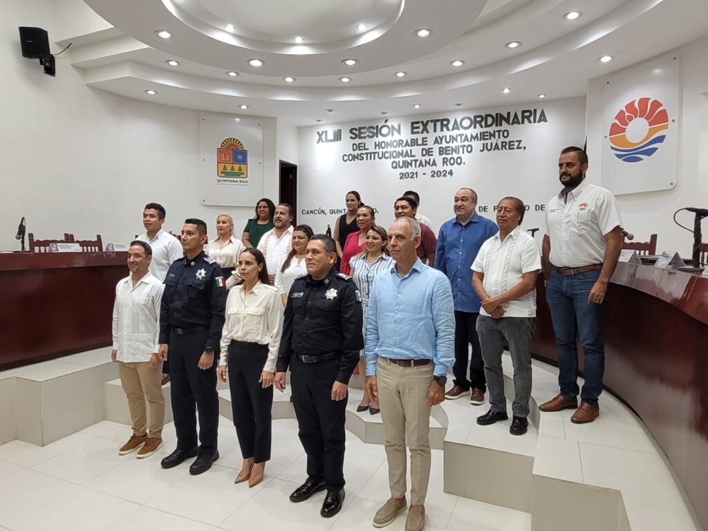 Cancún.- Carlos Ernesto D’amiano Sumuano, capitán de navío, tomó protesta como nuevo titular de la Secretaría Municipal de Seguridad Ciudadana y Tránsito (SMSCyT) de Benito Juárez, cargo que dejó José Pablo Mathey Cruz.