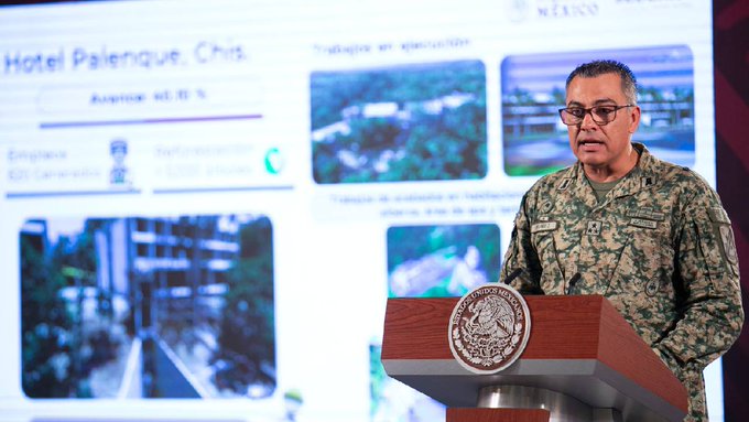 La Secretaría de la Defensa Nacional (SEDENA) anuncia la pronta inauguración de uno de los seis hoteles que se construyen en el marco del proyecto del Tren Maya. El hotel ubicado en Palenque, Chiapas, presentaba un avance del 40.10% a mediados de julio, y se espera que abra sus puertas el próximo 21 de septiembre.
