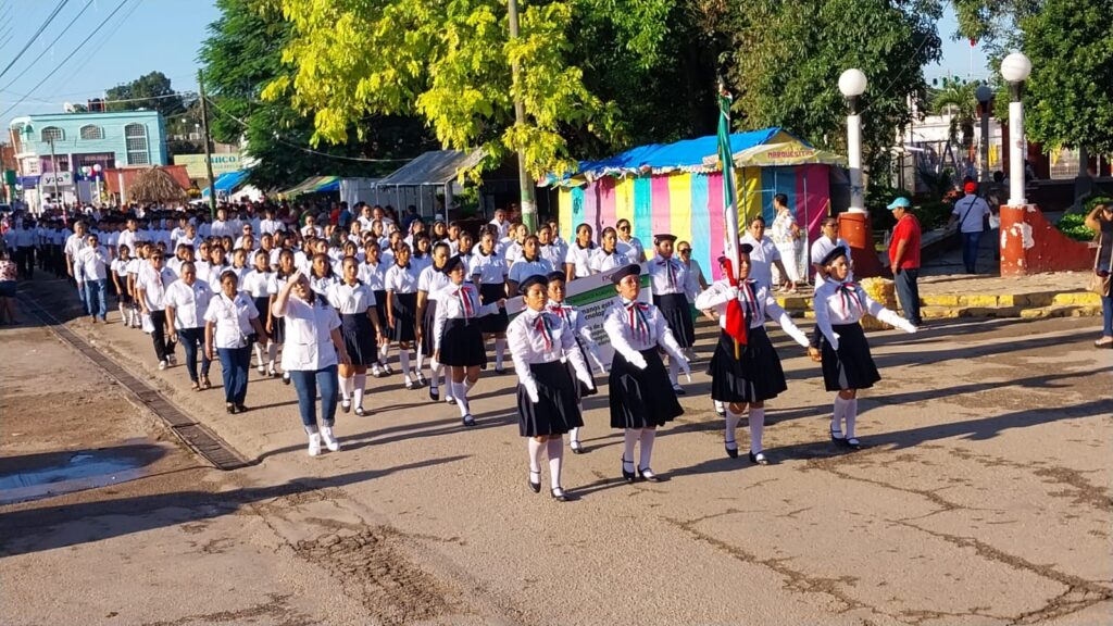 Kantunilkín.- Cientos de alumnos participaron en el tradicional desfile cívico para conmemorar el 214 aniversario del inicio de la Independencia de México, donde recorrieron desde temprano la avenida principal de la cabecera municipal.