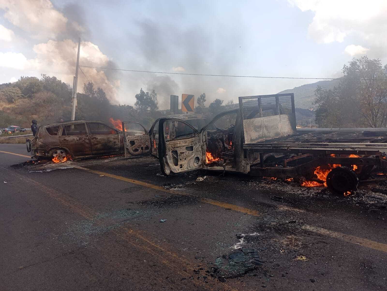 El Gobierno de Michoacán confirmó oficialmente que el CJNG incendió un mínimo de 15 vehículos sobre diversas vías, tanto federales como estatales. Los bloqueos afectaron gravemente el tránsito en los 16 municipios siguientes: Pátzcuaro, Tzintzuntzan, Quiroga, Morelia, Huaniqueo, Ecuandureo, Zamora, La Piedad, Yurécuaro, Numarán, Vista Hermosa, Ixtlán, Sahuayo, Chavinda, Chilchota y Tangamandapio. El secretario de Seguridad Pública del estado, José Antonio Cruz Medina, informó que las obstrucciones fueron retiradas de las carreteras alrededor de las 14:00 horas. Sin embargo, precisó que los operativos de búsqueda para dar con los sicarios responsables de los incendios continúan.