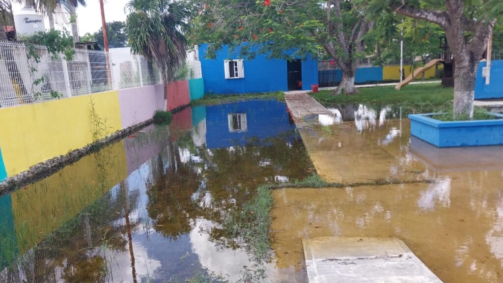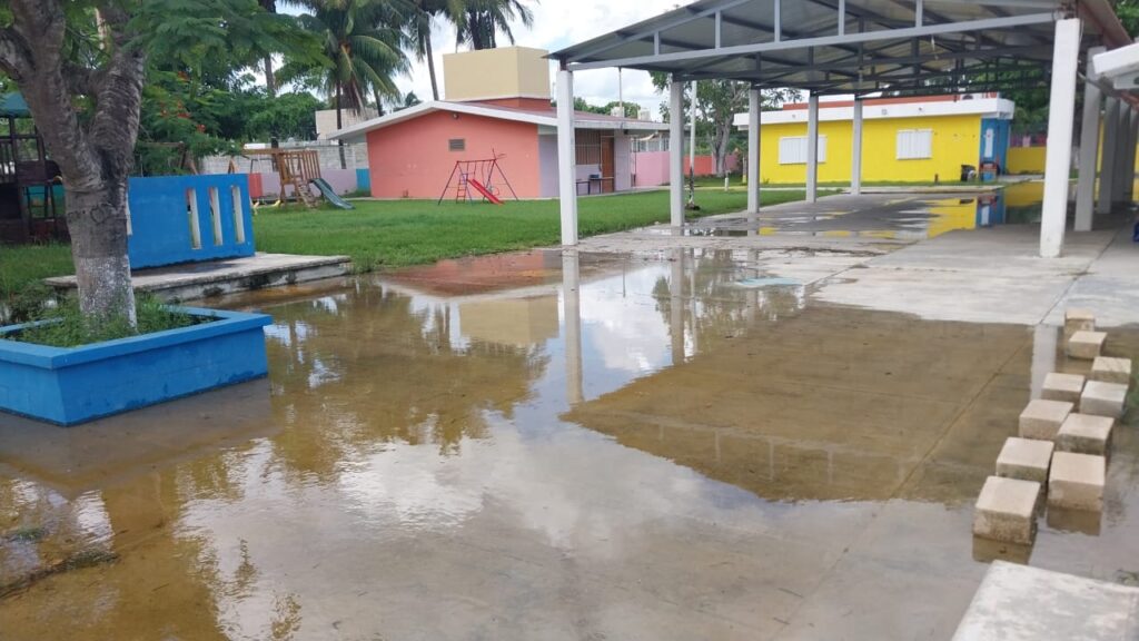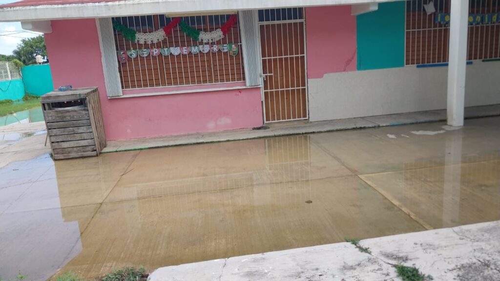 Esto provoca que el agua entre hasta las instalaciones educativas, lo que representa un peligro para los pequeños estudiantes y para los mismos maestros.