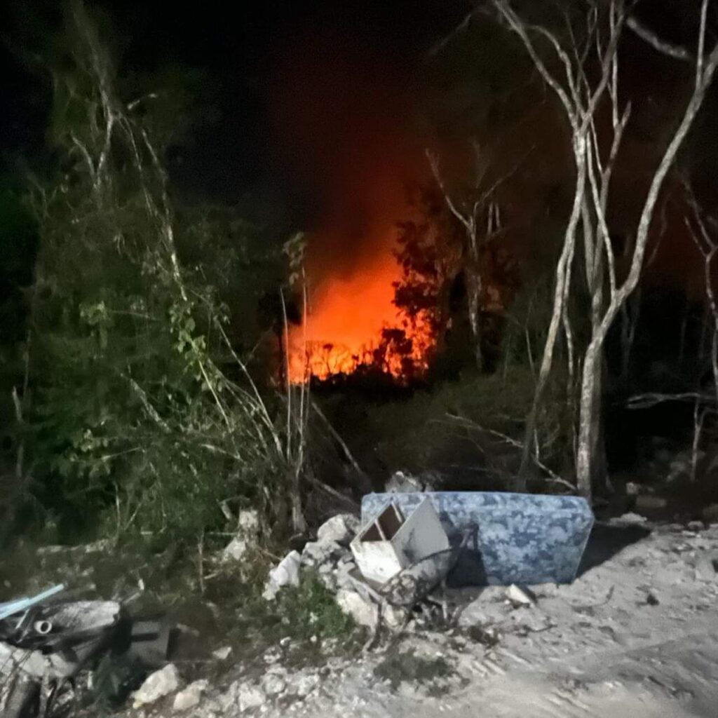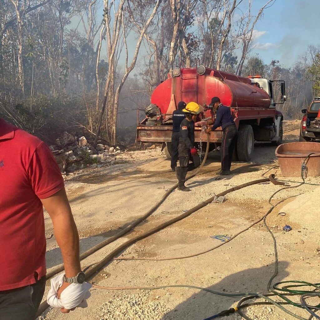 Dicho incendio se mantiene activo en el kilómetro 9 de la carretera Tulum-Cobá, cerca de la colonia Marites, donde esta tarde se encuentran decenas de cuerpos de emergencia.