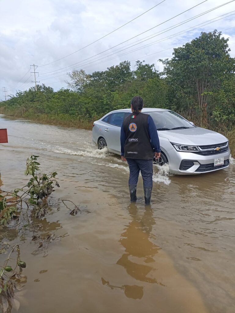 En coordinación con el Comité Estatal de Protección Civil de Quintana Roo, se realizaron recorridos por las zonas para evaluar los daños y colocar señalamientos que insten a los conductores a reducir su velocidad.