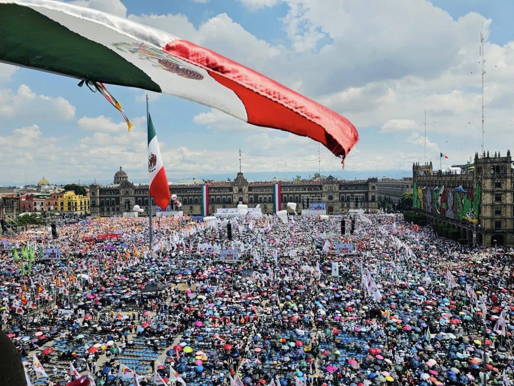 La presidenta Claudia Sheinbaum conmemoró el primer año gobierno con un discurso en el Zócalo de la Ciudad de México, el cual estuvo lleno de simpatizantes. El evento representó el cierre de su gira nacional para presentar los alcances de su administración. Durante su intervención, la titular del Ejecutivo presumió que la reducción de homicidios dolosos es del 32 por ciento en este periodo. Además, destacó que la batería de programas sociales que entrega su administración es el más grande programa en su tipo en la historia del país.