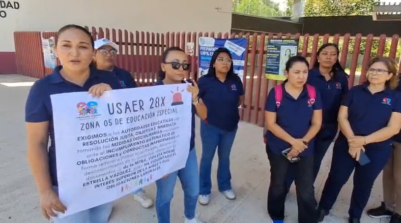 Playa del Carmen, QR. Un grupo de trabajadoras pertenecientes a la Unidad de Servicios de Apoyo a la Educación Regular (USAER) 28X se manifestó este miércoles frente a las instalaciones de la Secretaría de Educación de Quintana Roo (SEQ). Las inconformes expresaron su rechazo ante las exigencias de la maestra Violeta Noemí Estrella Vázquez, quien solicita su permanencia definitiva en un plantel específico del municipio de Solidaridad. Según las manifestantes, dicha petición contraviene los reglamentos actuales de asignación docente, generando un conflicto administrativo que afecta la operatividad de los servicios educativos. Durante la movilización, el personal docente subrayó que esta protesta escolar en Playa del Carmen busca restablecer el orden institucional y el cumplimiento de la normativa vigente.