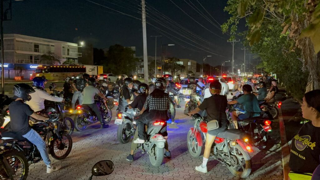 En Playa del Carmen, un grupo superior a 300 motociclistas se reunió cerca de la entrada a Playacar, para proceder a bloquear la entrada al puente de la carretera federal 307, primero en sentido de sur a norte, y después para hacer lo mismo de norte a sur.