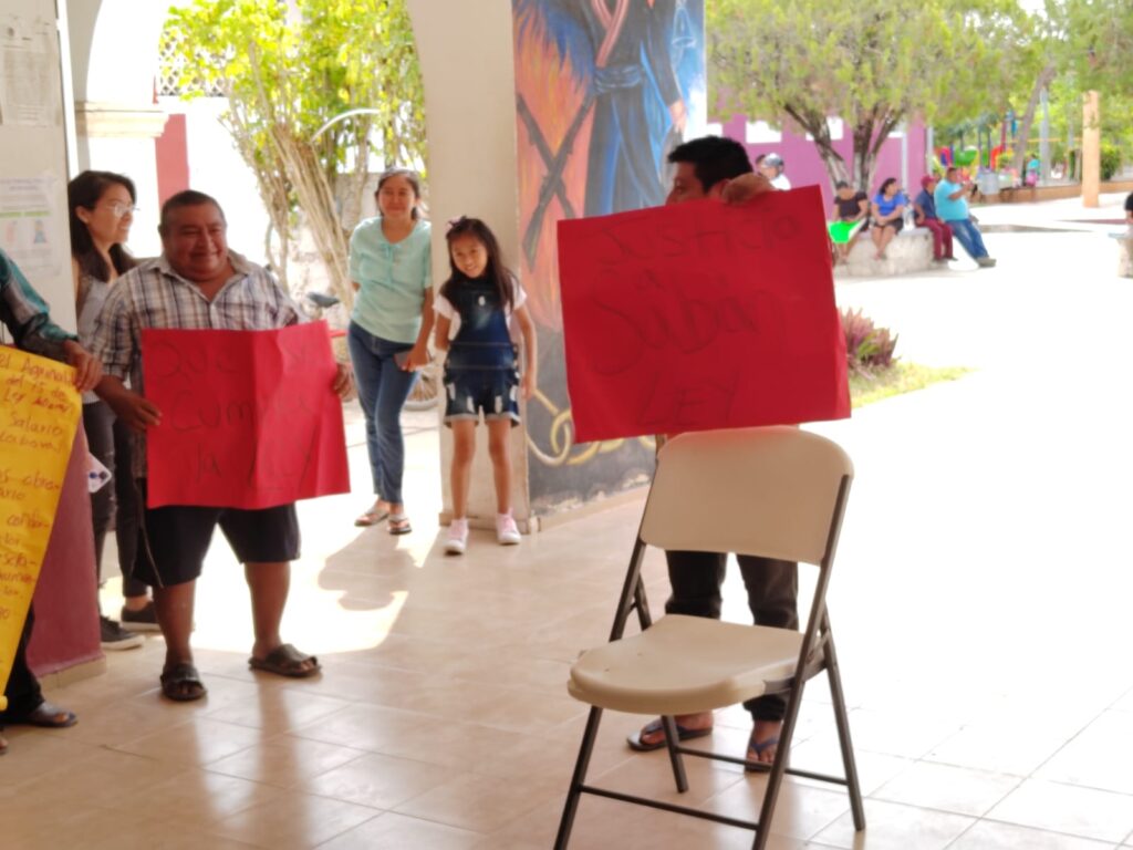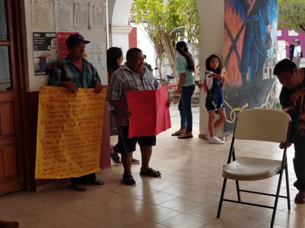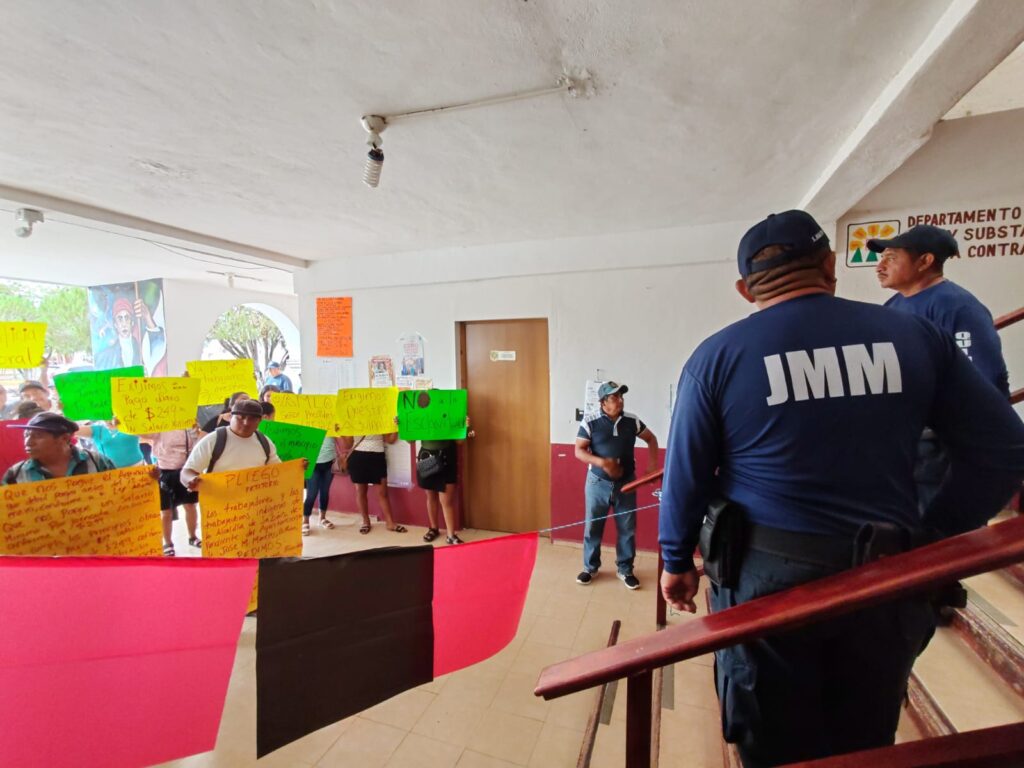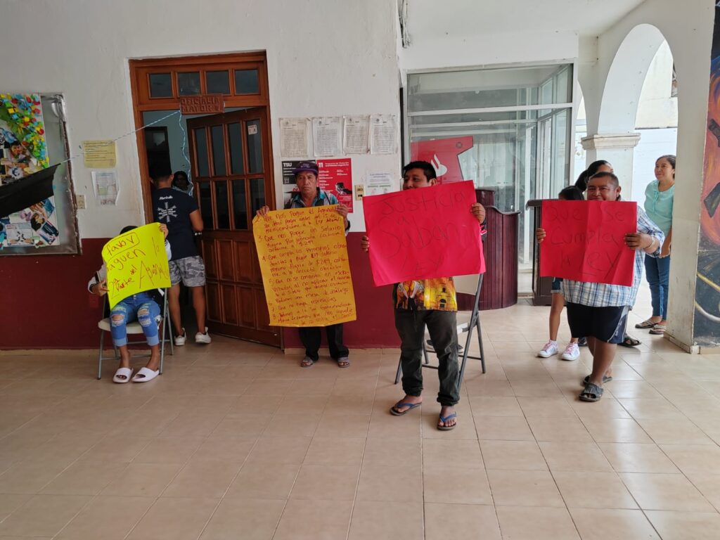 Los inconformes exigían dialogar con Erick Borges Yam, presidente municipal, o con el nuevo tesorero, Francisco Sánchez May, quienes no estaban en el lugar (el edil viajó hoy a Chetumal, se les explicó).
