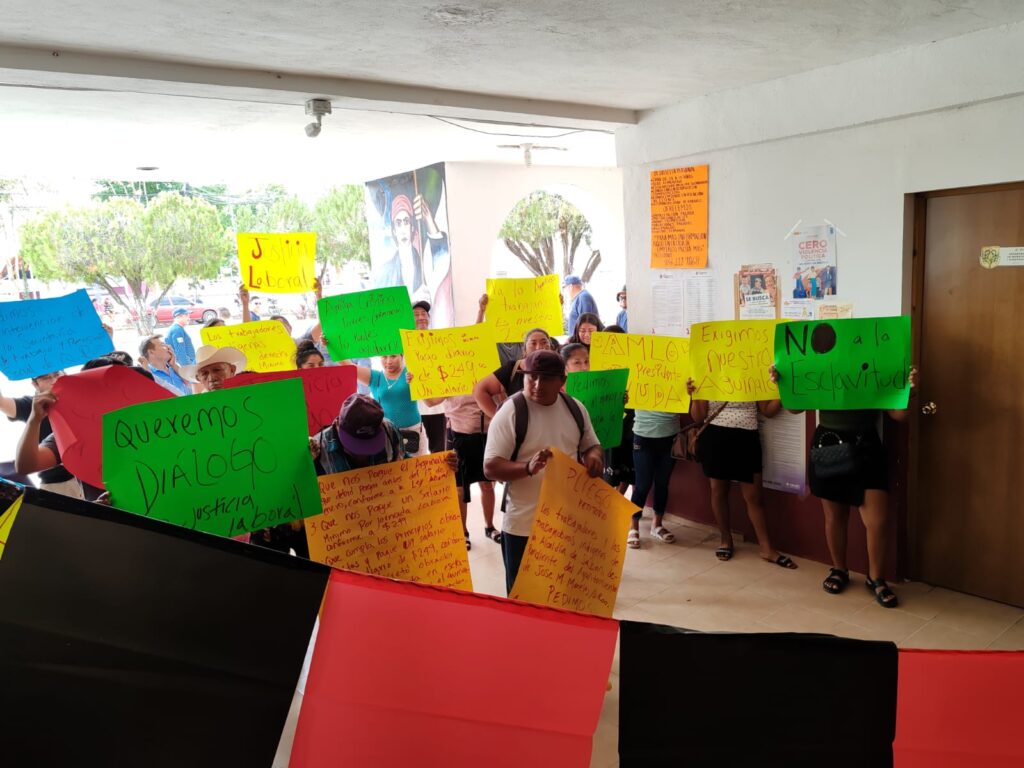 Los 58 trabajadores de esta alcaldía, que dependen del gobierno municipal, viajaron hasta la cabecera municipal para apostarse frente al palacio, donde portaron pancartas donde exigían “Justicia Laboral”, además de entregar pliego petitorio con ocho demandas, entre ellas, el pago del aguinaldo y no realizar represalias contra los manifestantes.
