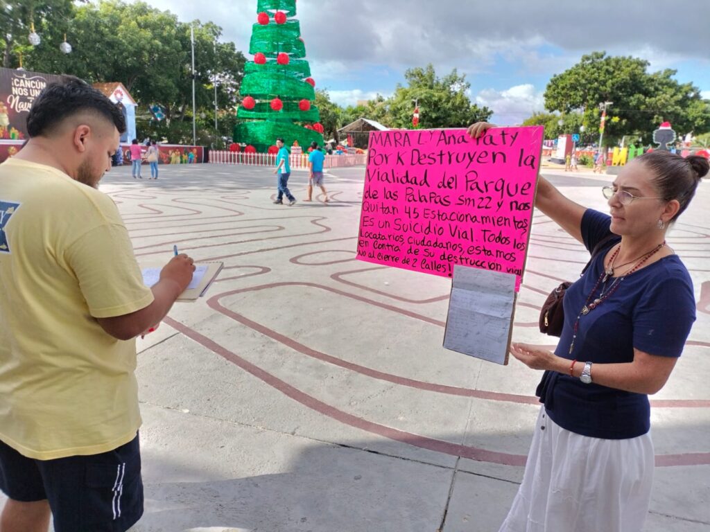 Los inconformes advirtieron que con esta acción, dificultan su movilidad y perjudican a los comercios, en beneficio de comerciantes ambulantes, que transformarán al Parque de las Palapas y su zona colindante “en un mercado”.