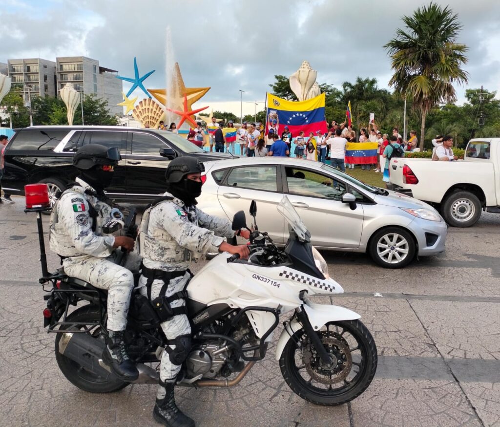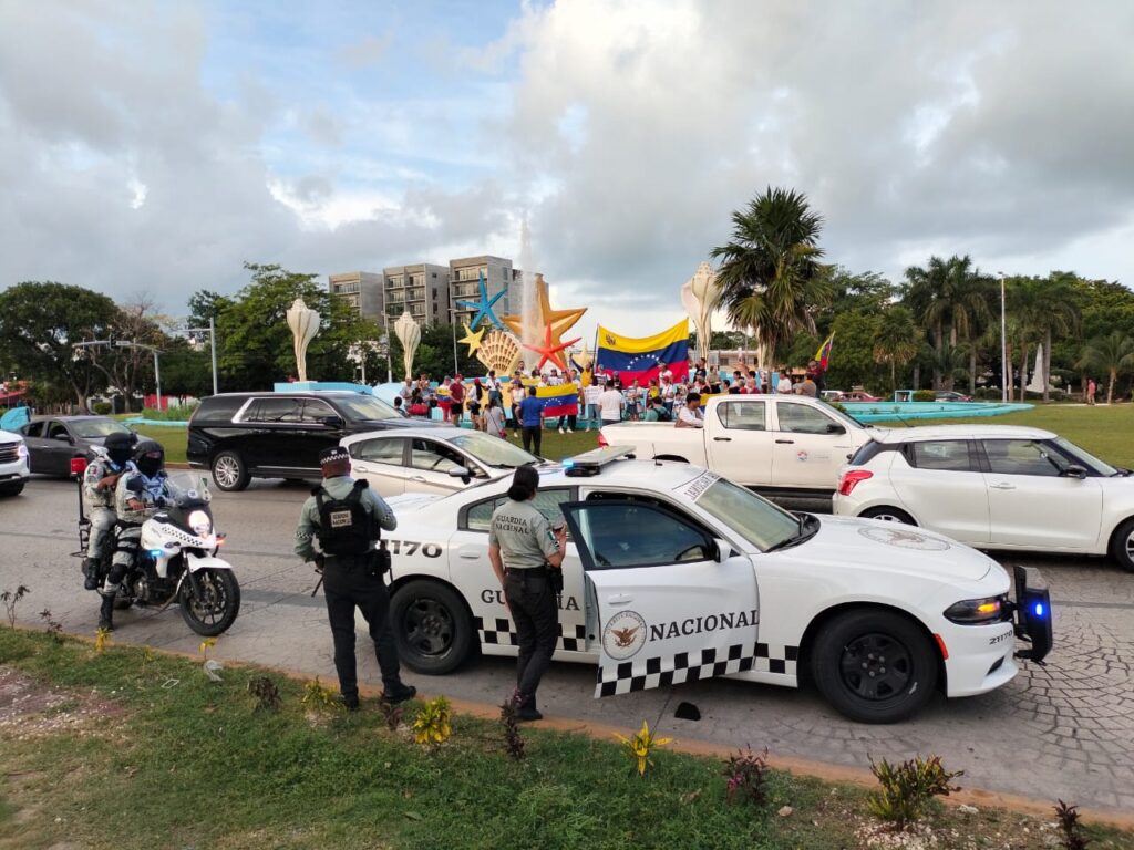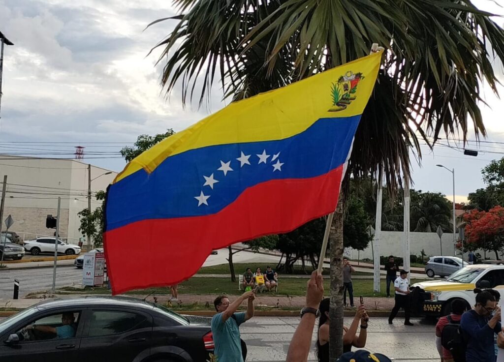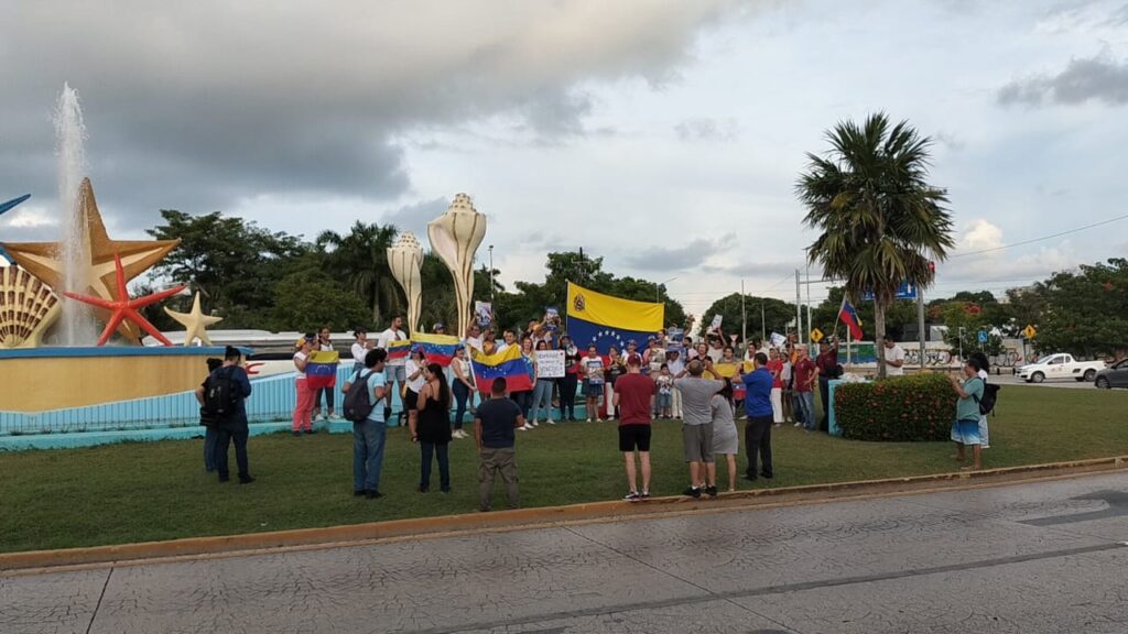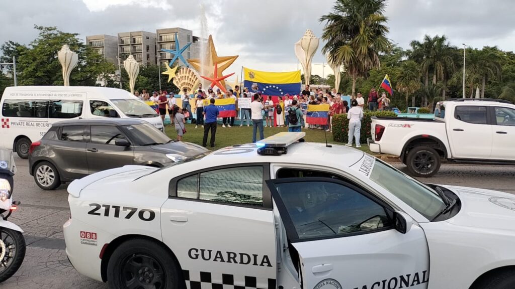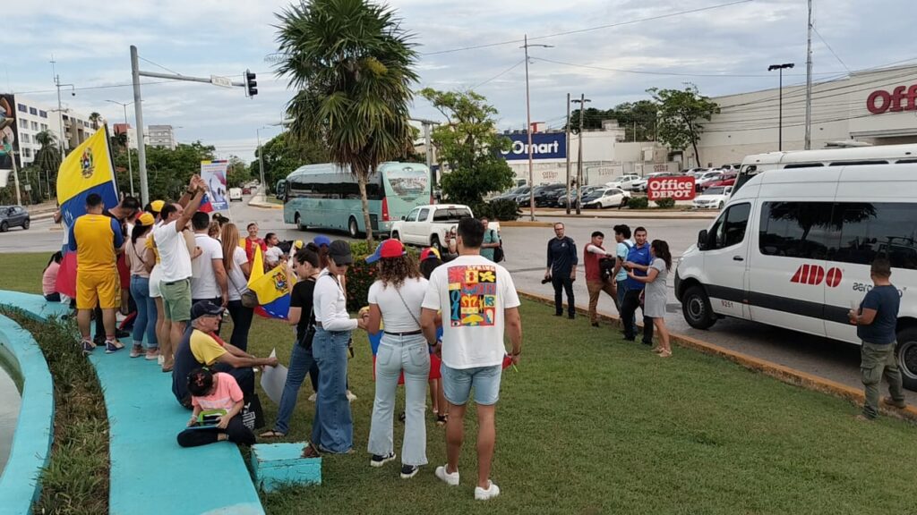Protestan venezolanos en contra de Nicolás Maduro en la glorieta ‘El Ceviche’ de Cancún