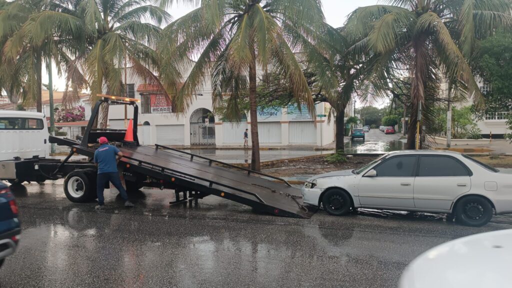 En total, son 40 elementos operativos, tres grúas y ocho unidades pick up las que se encuentran desplegadas en la ciudad, para dar auxilio vial y remolcar vehículos afectados por los encharcamientos.