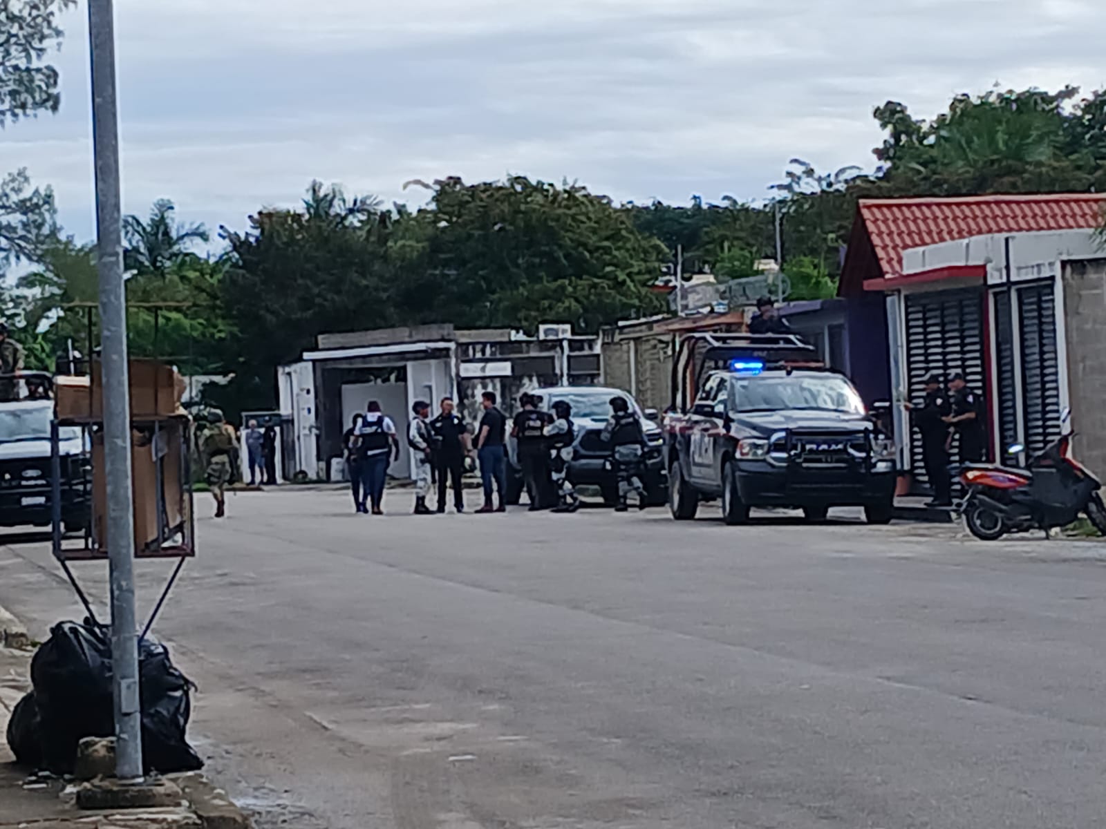 Mientras que en el Residencia Marsella los elementos realizan la revisión de una camioneta, así como en la colonia 8 de Octubre, donde los oficiales esperan la orden de un juez para ingresar a un domicilio.