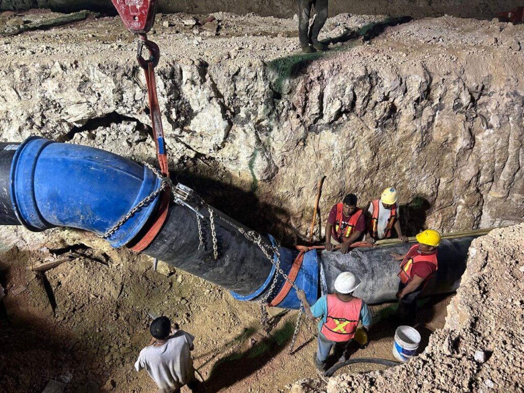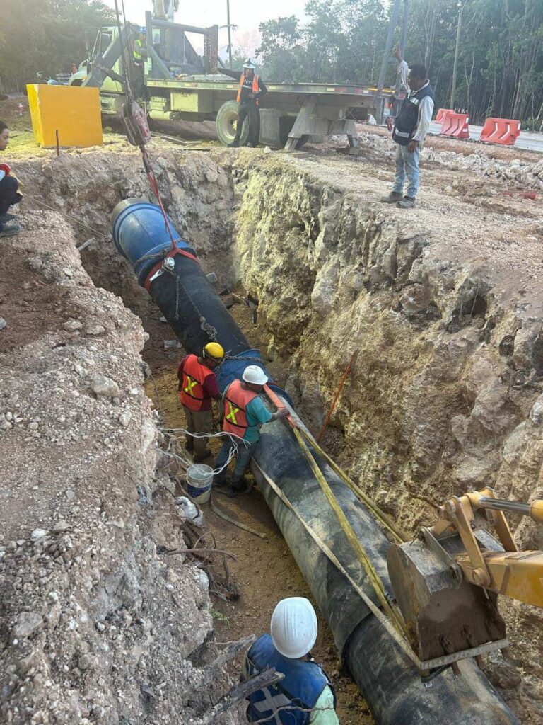 Playa del Carmen.- Luego de que trabajadores de la empresa ICA que laboran en las obras del Tren Maya rompieron una tubería principal de Aguakan que dejó sin agua a más de la mita de la ciudad, esta tarde, la empresa concesionaria informó que ya fue raparada.