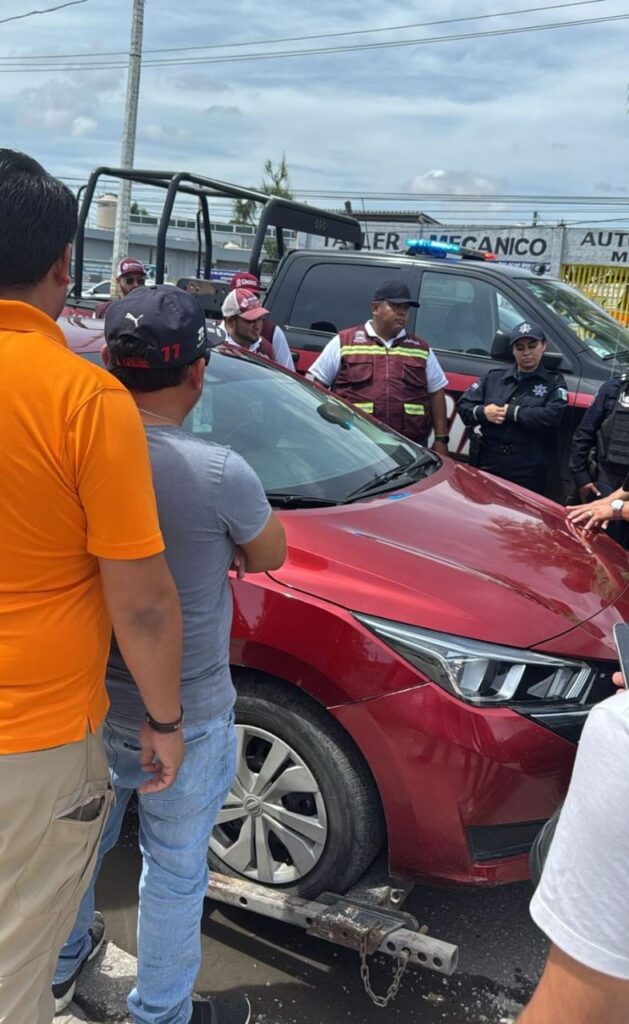 Alrededor de las 12:30 de la tarde, personal de esa dependencia interceptó los automóviles sobre la avenida Bonampak, casi esquina con Francisco I. Madero, con la intención de remolcarlos al corralón.