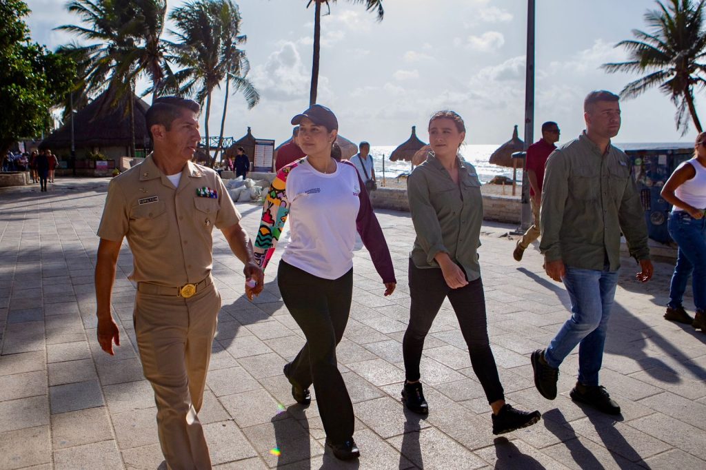 Acompañada por el Contralmirante Topiltzin Tlacaeletl Flores Jaramillo, Mercado destacó el trabajo diario de más de 120 elementos navales y personal de ZOFEMAT. Desde el amanecer, estas fuerzas realizan labores intensivas de limpieza y retiro del alga. “Este trabajo titánico no solo protege nuestras playas, también cuida nuestra economía y futuro”, afirmó la Alcaldesa.