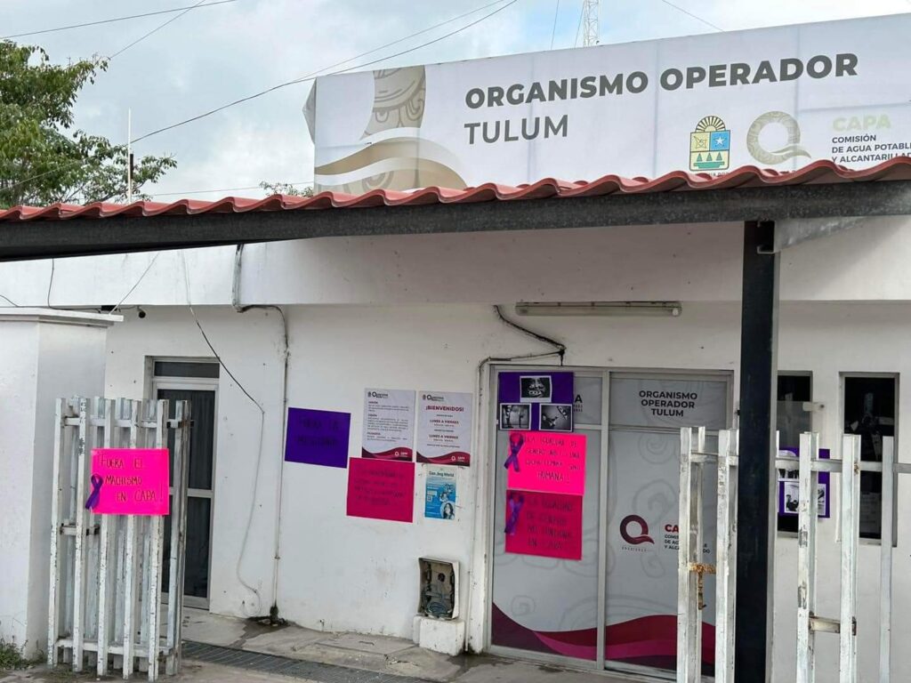 Tulum.- Trabajadores de confianza de la Comisión de Agua Potable y Alcantarillado (CAPA) de Tulum se manifestaron de forma pacífica en las instalaciones de este organismo en esta ciudad, para denunciar la intimidación que sufren por parte del sindicato, que encabeza Raymundo Santamaria Montejo.