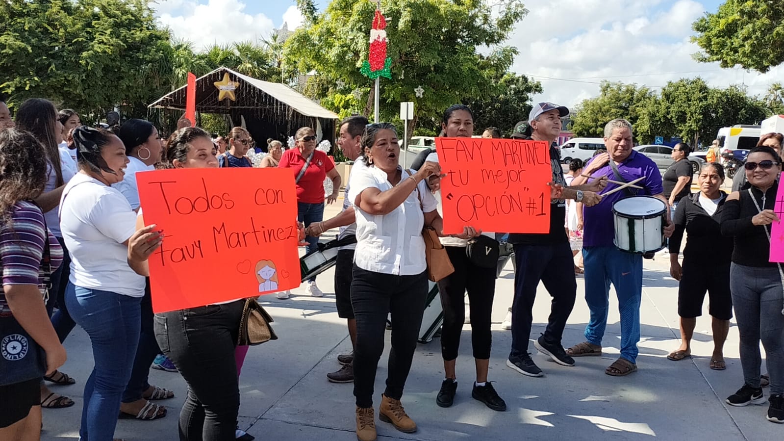Cancún.- Con batucada y música de banda, Fabiola Martínez González, aspirante a delegada de Alfredo V. Bonfil acudió al Palacio Municipal para realizar su registro y participar en la elección del próximo 22 de diciembre.