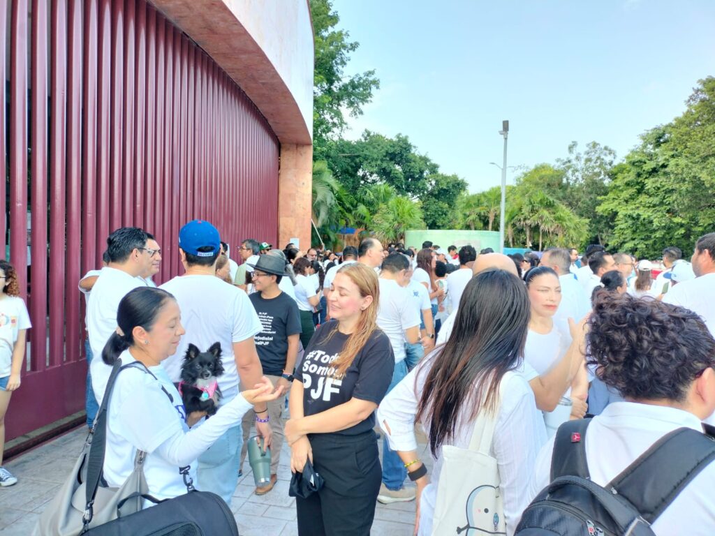 Desde intendentes hasta secretarios de colegiados se congregaron afuera de las instalaciones del PJF ubicadas en la avenida Andrés Quintana Roo, donde externaron su inconformidad por la intención de desaparecer la carrera judicial para elegir a jueces y magistrados mediante el voto popular.
