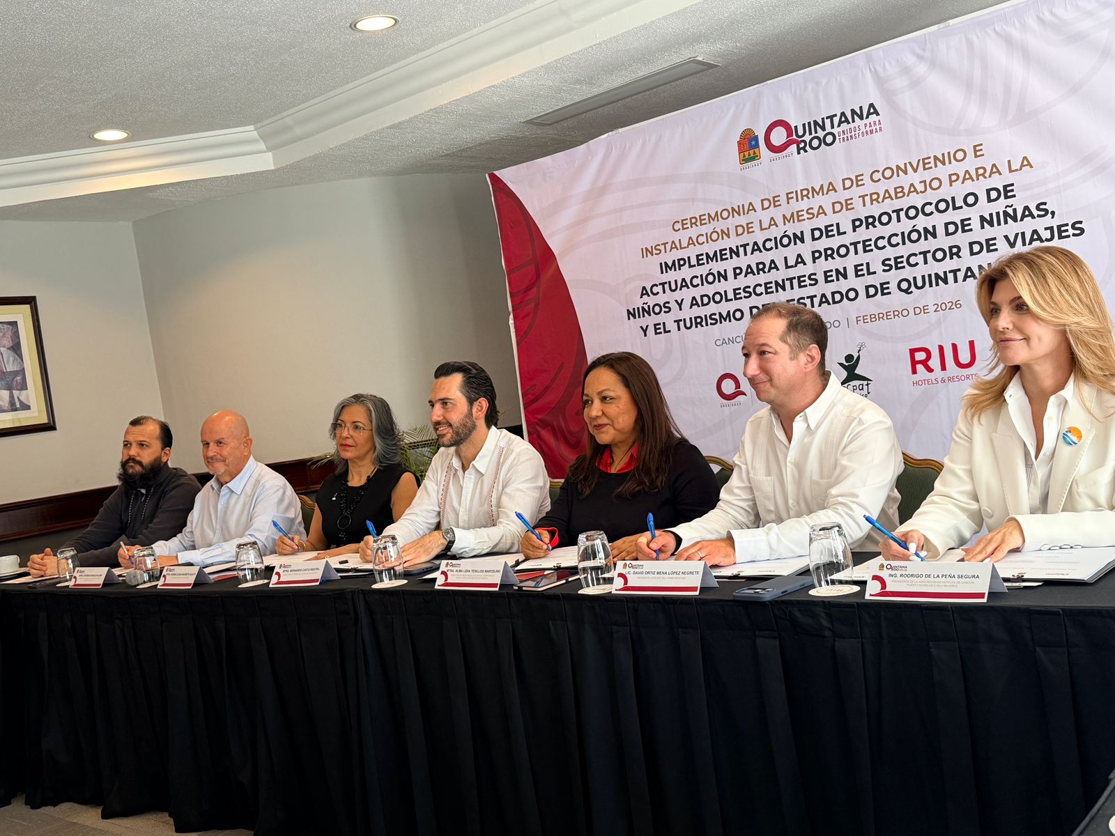 Atestiguaron la firma Alma Testillos, Directora de Responsabilidad de hoteles Riu en América, así como Norma Negrete Aguayo, Coordinadora Nacional de ECPAT México, entre otros.