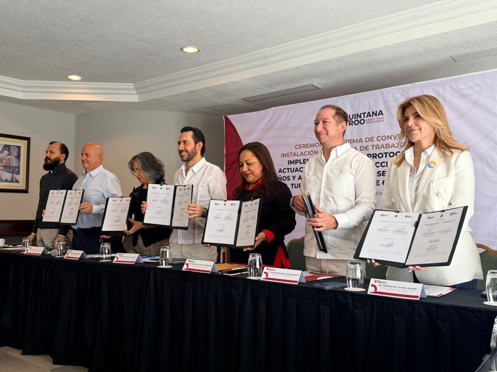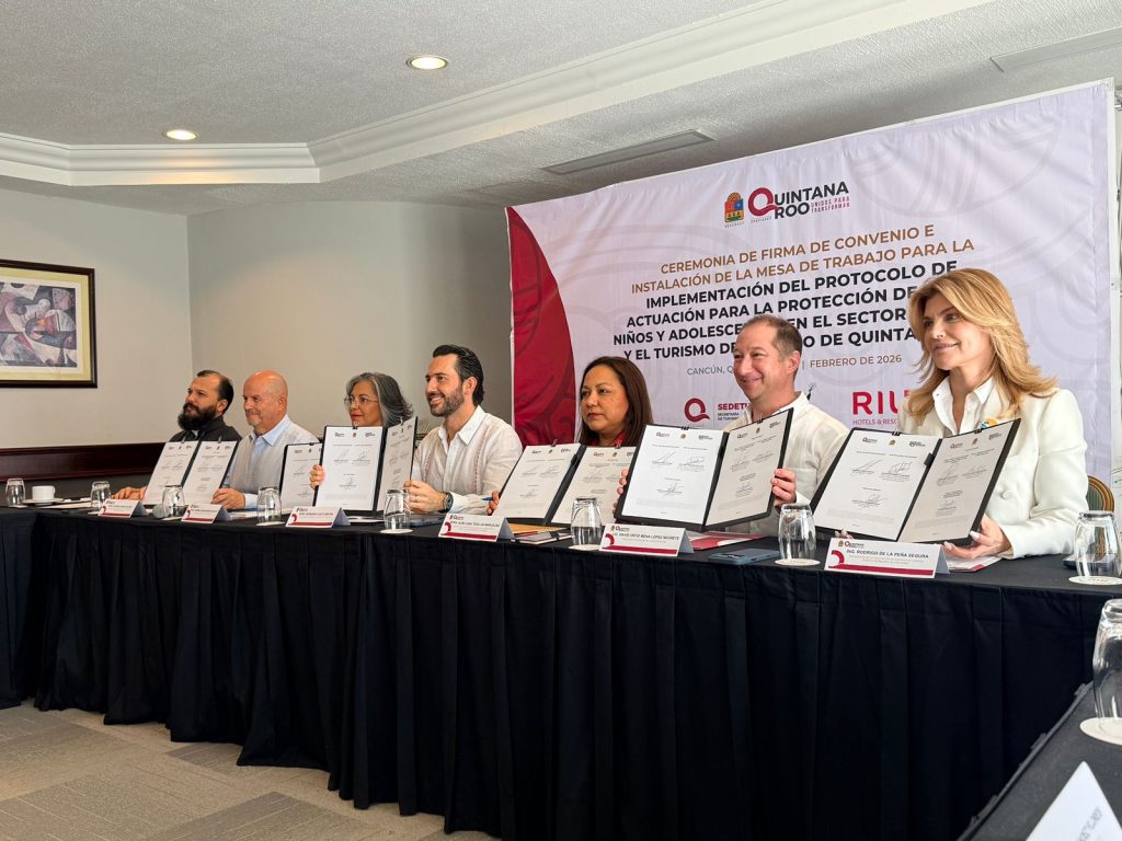 Cancún, QR. Para garantizar un entorno seguro para la infancia en los destinos del Caribe Mexicano, el Gobierno del Estado, a través de la Secretaría de Turismo (SEDETUR) y empresarios hoteleros firmaron un convenio e instalaron la Mesa de Trabajo para la implementación del Protocolo de Actuación para la Protección de Niñas, Niños y Adolescentes (NNA) en el sector de viajes y el turismo.