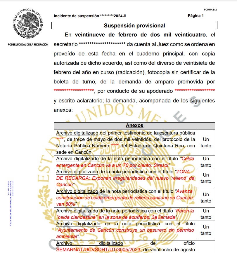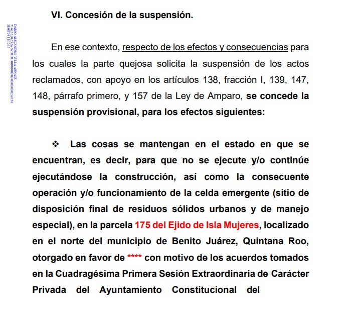 Cancún.- El Juez Séptimo de Distrito en el Estado de Quintana Roo falló en favor de una asociación civil, para suspender de manera provisional la recién inaugurada celda sanitaria emergente “Parcela 175”, por diversas irregularidades.