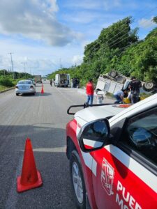 Mueren dos motociclistas al chocar contra un volquete del Tren Maya, en la carretera Bacalar-Chetumal