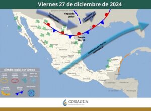 Durante este día, el frente No. 18 se extenderá con características de estacionario sobre el norte y noreste del territorio nacional generando vientos fuertes en dichas regiones