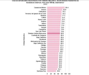 A nivel nacional, la tasa de defunciones registradas debidas a causas externas (violencia, suicidio, accidentes, etc.) por cada 100 mil habitantes fue de 66.0 en el periodo de referencia, donde Quintana Roo ocupa el lugar número 9 de los 32 estados, con 77.0 fallecidos por cada 100 habitantes, 11 puntos arriba de la media nacional.