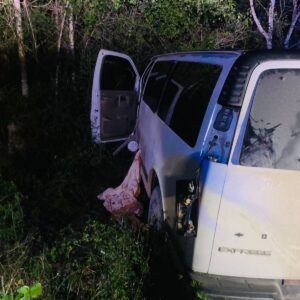 Los sujetos se dieron a la fuga en una camioneta blanca, con placas UUH-720-J, la que apareció estrellada contra una roca, en el entronque de esta comunidad con la carretera federal 307.