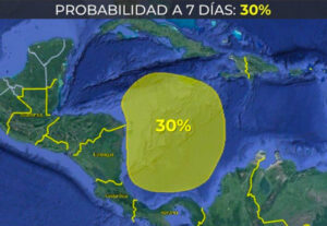 Según el pronóstico del SMN, la depresión tropical Veintiuno se desplazará sobre Centroamérica, pero su circulación favorecerá el ingreso de humedad del Mar Caribe hacia la Península de Yucatán, donde se prevén lluvias puntuales muy fuertes en Quintana Roo y lluvias puntuales fuertes en Yucatán y Campeche.
