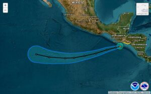 El ciclón tropical se encuentra actualmente a 290 kilómetros al sureste de la desembocadura del Río Suchiate, frontera entre México y Guatemala, y a 195 kilómetros al suroeste de San Salvador, El Salvador.
