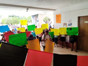 Los inconformes se mantiene afuera de las instalaciones donde no permiten que se realice ningún servicio, por lo que las oficinas fueron cerradas con candado en espera de llegar a un acuerdo.