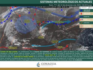 El ingreso del frente frío 27 y una masa de aire polar generarán un descenso drástico de temperatura y lluvias intensas en diversos estados de la República.